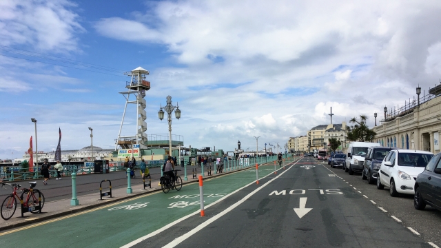 ブライトンの海沿いには「海上遊園地」やゲームセンター、飲食店が多数並ぶ桟橋「ブライトン・ピア」を先頭に、みやげもの屋、ミニゴルフやアスレチックのようなロープ遊具を楽しめる施設、観光案内所などがあり、観光客でにぎわっています。