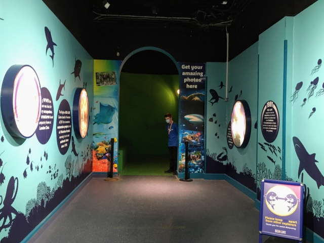 コロナ以降、イギリスでは屋内施設に滞在する人数を調整するため、博物館や城内などの入館には事前予約が必須になって久しいです。こちらの水族館でも、当日券の販売はあるものの、混雑時に訪れた場合は空きがなく入れない場合もあるので、オンラインでの予約が望ましいと言えます。