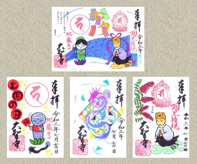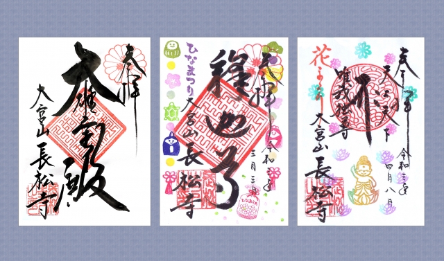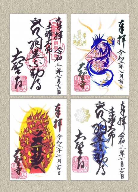 大聖寺は御朱印の種類が豊富。通常の御朱印が4種類、月替わり御朱印が4種類あり、どれにしようか迷うのも楽しいです。今から300年近く前、当時の住職が雨乞いの修法を行った際に龍が現れたという伝説があり、御朱印や御朱印帳にも龍神がデザインされ人気です。公開はされていませんが、寺宝として龍の爪が伝わっています。