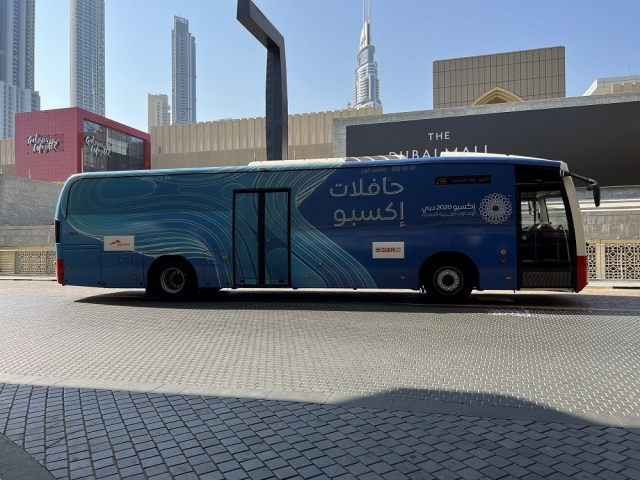 Expo Riderはエキスポ会場と市内9か所(Palm Jumeirah、Al Baraha、Al Ghubaiba、Etisalat、Global Village、International City、Dubai Silicon Oasis、Dubai Mall、Dubai International Airport (Terminal 3) )、そしてアラブ首長国連邦のアブダビなど他都市を結んでいます。エキスポ会場には、停留所が3つ(Sustainabilityエリア、Mobilityエリア、Opportunityエリア)あり、このうちのいずれか1つのみと直行便で運航されています。タイムテーブルについては、アプリ「S’hail」をダウンロードするのがベストです。乗車の際は不正利用防止のため、チケットの提示が必要となります。ちなみに、ドバイモールからの所要時間は、交通状況により、30分~45分となっています。