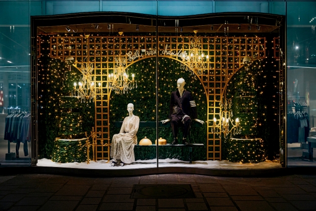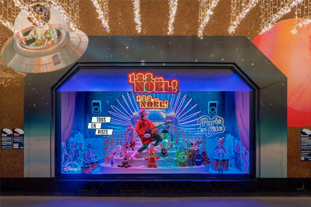 ショーウインドーは、パリ郊外に工房を構える「アトリエ・ブルニヤ」による制作。おもちゃが目を覚ます光景や、ギターを弾きながら踊るサンタクロース、みんなでのパーティやクリスマスのコーラスなど、それぞれのシーンが再現されています。