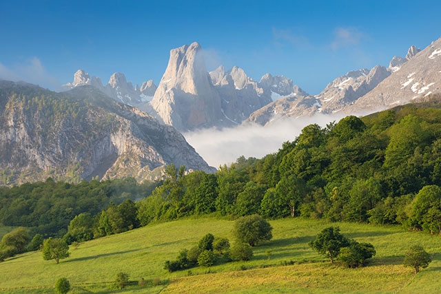 アストゥリアスがスペインでも独特の文化を形成したのは、前述のカンタブリア山脈の北側に位置するという地政学上の理由は大きく、そのなかほどには「ヨーロッパの頂」という名の「ロス・ピコス・デ・エウロパ国立公園」があります。スペインといえば乾燥したラ・マンチャの大地やオリーブ畑が延々と続くアンダルシアの光景が連想され、これぞスペインという印象をもたらしますが、グリーンスペインとも称される北スペインはそのイメージとは全く異なり、山岳部では氷河が形成した渓谷や湖、緑の草原などが広がり、その雄大さに圧倒されるはずです。