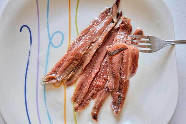 もうひとつ忘れてはいけないカンタブリア海を代表するグルメ食材といえばアンチョビです。その昔、シチリア島の漁師達が美味しいアンチョビを作るために最高のカタクチイワシ(アンチョビの材料)を探し求めてたどり着いたのがカンタブリア海であり、アンチョビの聖地といわれるカンタブリア州サントーニャ村ではこの地に移り住んだイタリア人の子孫たちが世界最高のアンチョビを製造しているそうです。地元で水揚げされた新鮮なカタクチイワシを素早くカットし塩漬けにして長期熟成します。熟成されたアンチョビはピンセットを使ってていねいに骨を抜き、オリーブオイルに浸して缶詰/瓶詰されて更なる熟成を行います。高級食材アンチョビは海の生ハムともいわれ、熟成をコントロールするためにスペインでは冷蔵保存が義務付けされる繊細な美食材です。日本では滅多にお目にかかれない貴重なアンチョビを味わっていただきたいものです。