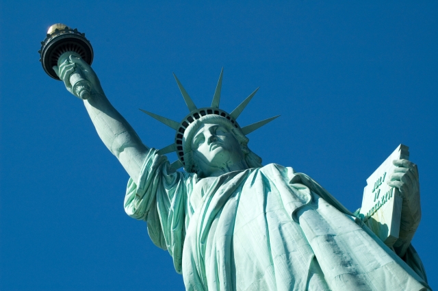 ところで、アメリカの最初の首都がどこに置かれていたかご存知でしょうか? 答えはニューヨークです。最初の国会議事堂になったフェデラルホールは、ワシントンが初代大統領に選ばれたところで、ここのバルコニーから就任演説をしました。フェデラルホールから南へ歩くとバッテリーパーク、その向こうにはアメリカンシンボルである自由の女神像が見えてきます。世界遺産にも登録され、多くの移民を見守ってきた女神像の下には博物館もあり、女神のあるリバティアイランドから見るマンハッタンのスカイラインも必見です。