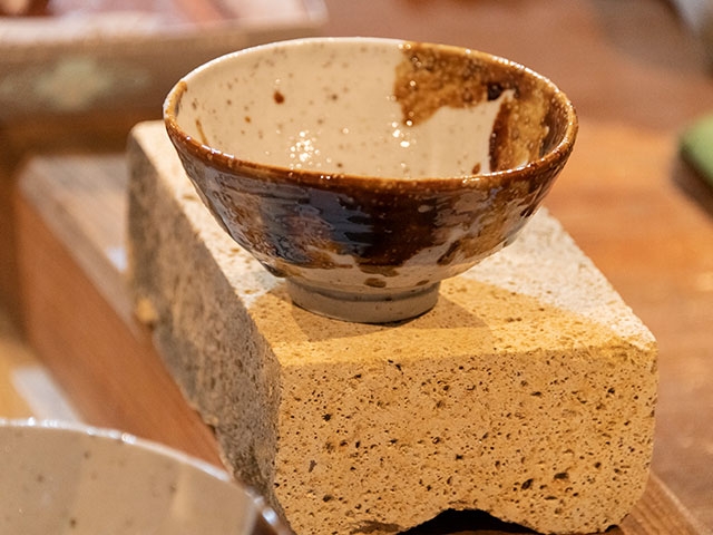 小松市高堂町の九谷焼竹隆窯は、北村隆氏が初代、息子である和義氏が二代目。九谷焼の伝統技法を用いた作品の数々は、代表作の北前船絵皿のほかにも、昆虫のフィギュアやスニーカーをもモチーフとするなど、幅広い世代のファンから支持されています。初代・北村隆氏は2021年、花坂陶石から作る陶土に観音下石を1割ほど混ぜた九谷焼を焼き上げています。小松の石の文化を伝えるこの作品は、企画から完成まで約1年がかり。観音下石は鉄分が多く、焼きあがるとざらざらとした独特の風合いになるそうです。