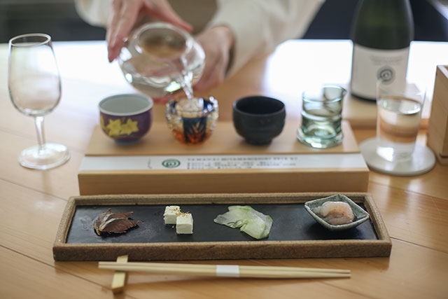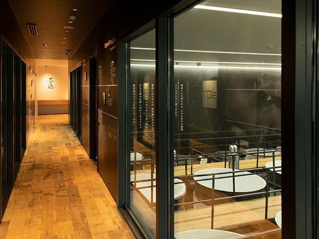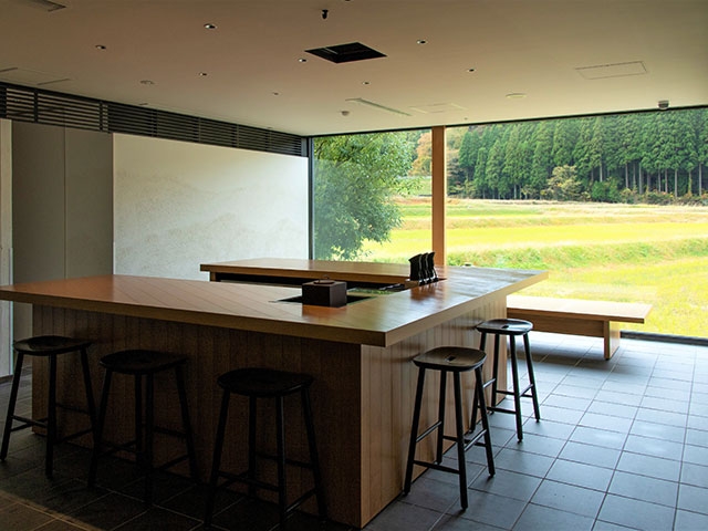 研究所では季節ごとに選んだ日本酒のテイスティングが可能です。杜氏、農口尚彦氏の酒づくりの歴史に触れるギャラリーを見学した後に、杜庵と名付けられた静かな空間で数種類の日本酒の飲み比べができます。茶室をイメージした四畳半のカウンター、観音下の四季の風景が写し出される大きな窓、そして特別な日本酒。運が良ければ、農口杜氏と楽しい会話ができるかもしれません。