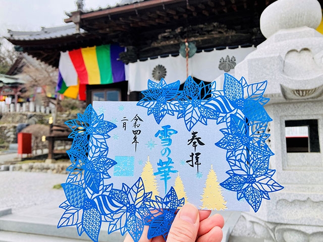 切り絵御朱印発祥のお寺でもある龍泉寺では、季節の風物をモチーフにした、限定切り絵御朱印や花手水御朱印、透かし御朱印など、バリエーション豊かで美しいオリジナル御朱印を頂けます。なかでも3か月ごとにデザインが変更されるアートな切り絵御朱印は、季節が変わるたびにお参りして集めたくなります。