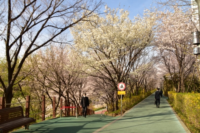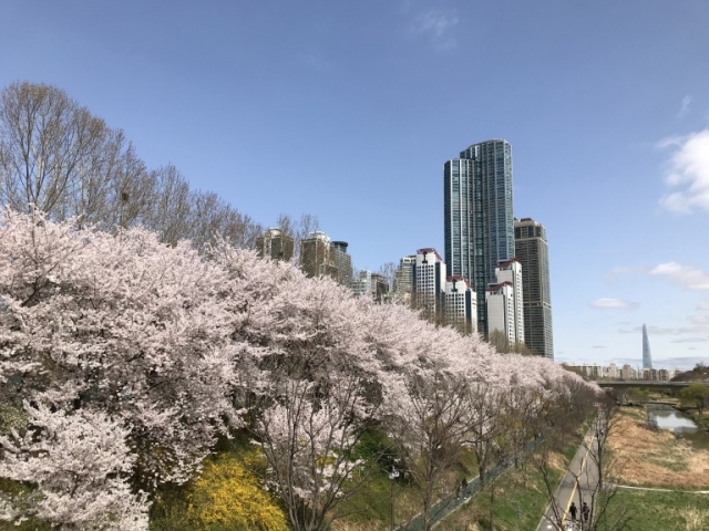ソウルの江南エリアを緩やかに流れる良才川(ヤンジェチョン)。良才川の川沿いには整備された散策道やサイクリングロードがあり、歩いたりジョギングしながらお花見をするにはぴったりです。