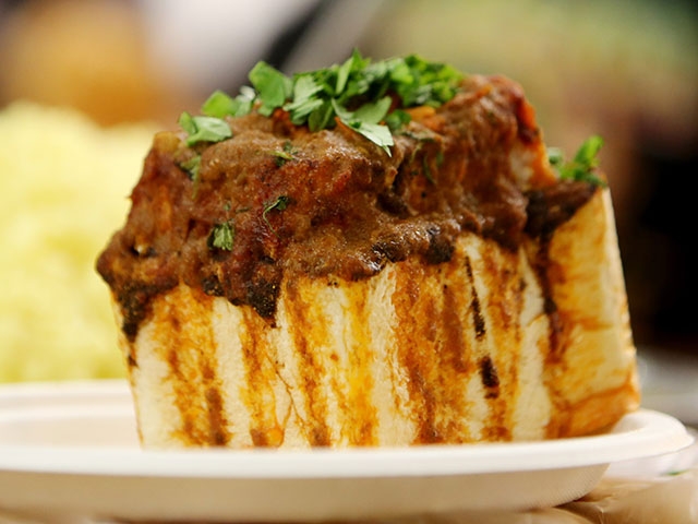 カレーは世界中で食べられていますが、南アフリカには珍しい一品があります。それが食パンをくりぬいてたっぷりとカレーを入れたバニーチャウBunny Chowです。この料理が生まれた背景には、南アフリカならではのちょっと悲しい歴史があります。インド人が開いた食堂に黒人は入れませんでしたが、店の裏口から手渡すことはできたため、食器を使わない方法としてパンにカレーを入れて渡したことが起源といわれているのです(諸説あり)。しかし今ではインド系住民の多い第3の都市ダーバンの名物料理で、そのユニークさから海外でも大人気の料理となっています。