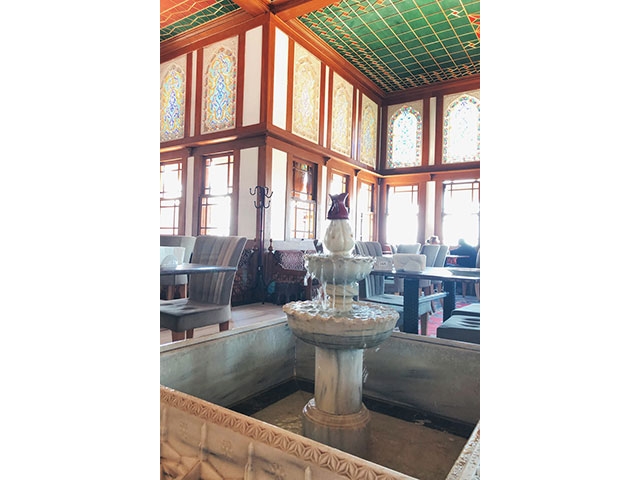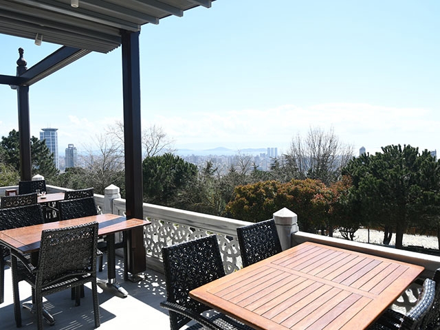 チャムルジャ・タワーのすぐ近くには、オスマン帝国時代の伝統的な様式で建てられたカフェ・レストラン、キュチュック・チャムルジャ・キョシュキュがあります。テラス席はチャムルジャ・タワーほどの高さはありませんが、丘の上に建っているので見晴らしはすばらしく、のんびりと景色を見ながら過ごすには絶好の場所といえます。店内は伝統的な装飾が施されており、雰囲気は抜群。屋内にも関わらず噴水があり、涼しさが演出されています。景色を楽しむテラス席か、内部装飾が美しい屋内か、どちらもおすすめなので、どこに座るか迷ってしまうかも。