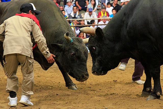 徳之島の伝統文化といえば、なんと言っても闘牛!その歴史は400年以上にもなります。島では闘牛のことを「なくさみ」と呼び、かつては厳しい年貢の取り立てに苦しめられていた島民にとっての唯一の娯楽として愛されていました。現在も年に数回大きな大会が開催され、大会時には島内外から3000名を超えるファンが詰めかけて、熱戦が繰り広げられます。