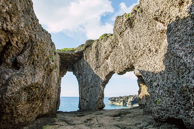 徳之島は絶景スポットも豊富です。犬の門蓋(いんのじょうふた)は、東シナ海に面する海岸線に広がる断崖・奇岩で、風や雨が長い年月をかけて作り上げた自然の造形に圧倒されます。