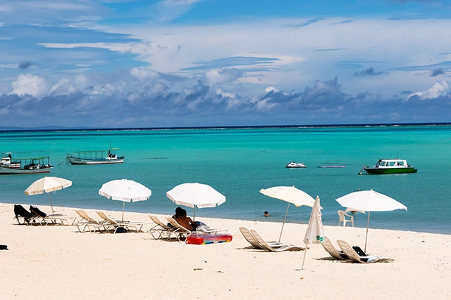大金久海岸は遠浅の海が続くヨロン島最大のビーチ。この沖合に百合ヶ浜があり、シーズン中はボートが待機しています。百合ヶ浜に渡らなくてもここでも充分キレイ!シャワーやトイレなどの設備も整っているので安心です。