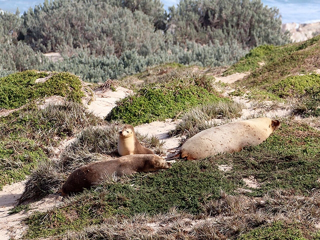 訪問時期が5月半ばだったのですが、このときはちょうどカンガルー島周辺に生息するオーストラリアアシカ、ニュージーランドオットセイが繁殖する時期とのこと。カンガルー島でいちばん人気のシールベイ保護区では、母親のそばですやすや眠ったり、好奇心旺盛に動き回る子供アシカの姿を多く見ることができました。ブッシュファイヤー時に焼けた可能性のあるビーチ近くの茂み。今では緑も生い茂り、昼寝をしたりするアシカの姿もたくさん。彼らの安息地もしっかり復活してきています。