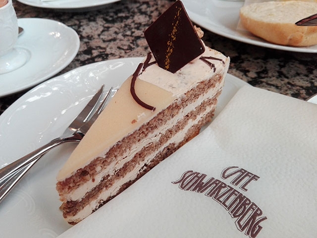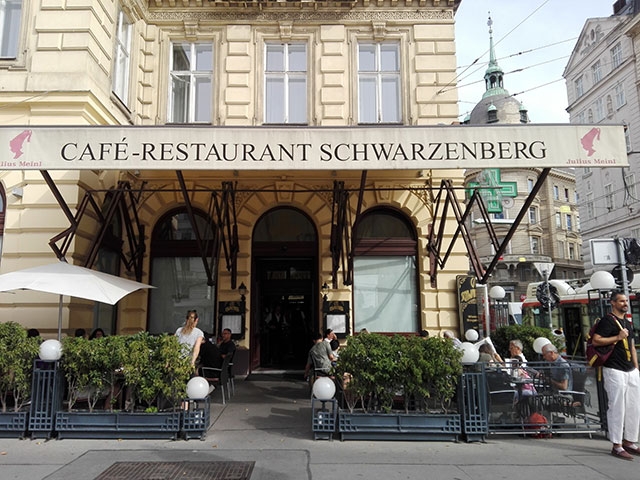 19世紀にオープンしたカフェシュヴァルツェンベルクは、ウィーンに来たからには欠かせない伝統カフェハウスを体験するのに最適な場所。常連客も集まる涼しくて心地良い夏の午前中は、外を眺めながらコーヒータイムを楽しめる人気のテラス席からまず埋まっていきます。