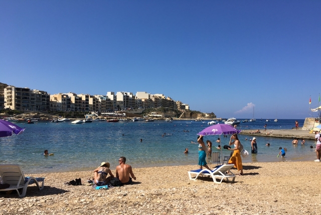 数ある美しい海水浴場のなかでも、「マルサルフォルン(Marsalforn)」は特に人気のビーチリゾートです。マルタの海岸はそのほとんどが岩浜ですが、こちらにはわずかに砂浜もあり無料のシャワーも併設されるなど、家族連れにもオススメです。