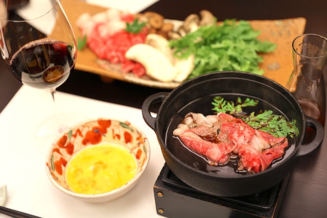 さらに「界 松本」にチェックインしてからは、県内のワインの造り手のこだわりを学びながらテイスティングを行う「NAGANO WINE 紀行」、夕食時のセルフペアリング、そして割下に赤ワインを合わせた「ワインすき鍋」まで登場し、まさにワイン尽くしの贅沢な旅が叶います(「手業のひととき」は2022年10月10日までの期間限定ですが、「NAGANO WINE 紀行」と「ワインすき鍋」はそれ以降も実施しています)。