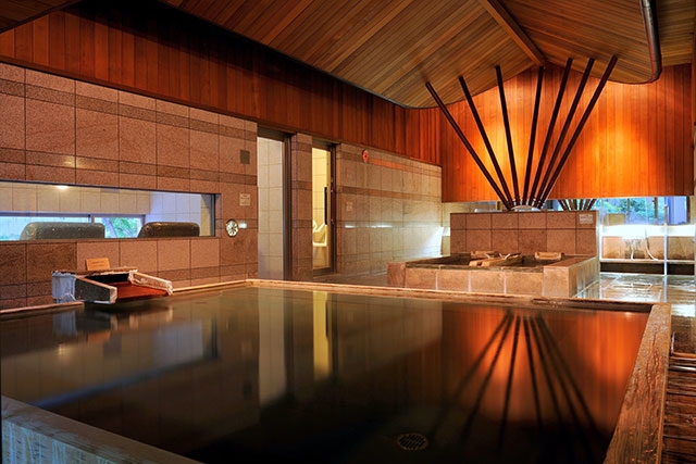 大浴場に行ってみるとびっくり!露天風呂はもちろん、岩盤浴のような「ラディアントバス」や浮力でリラックスする「寝湯」、香りのよい「檜おがくず風呂」など、なんと8種、13通りの湯浴みが楽しめます。どこから入っていいか迷ってしまいそうですが、そんな人のため事前に「うるはし現代湯治」というレクチャーを開催し、温泉の入り方を無料で指南してくれます。