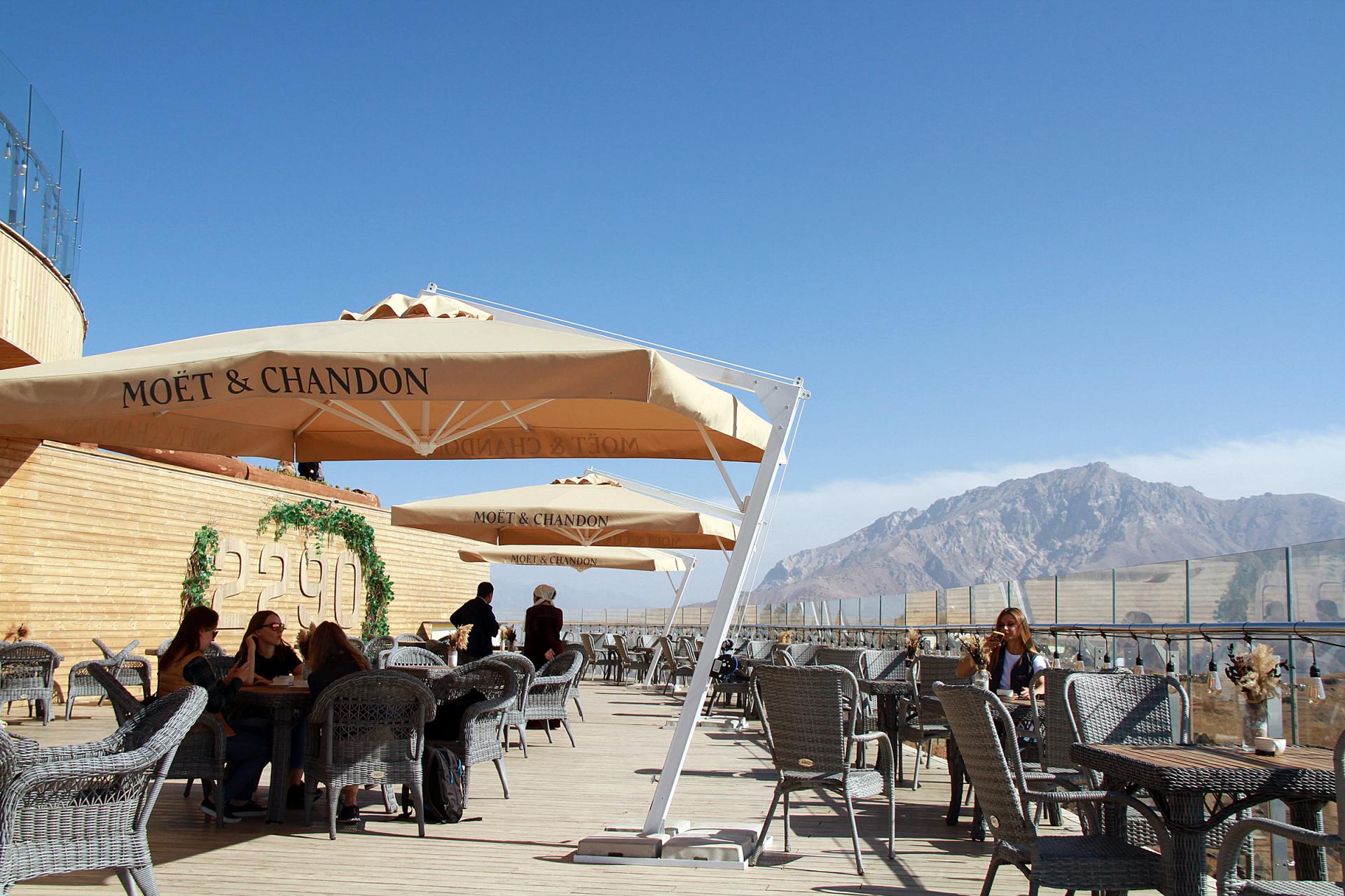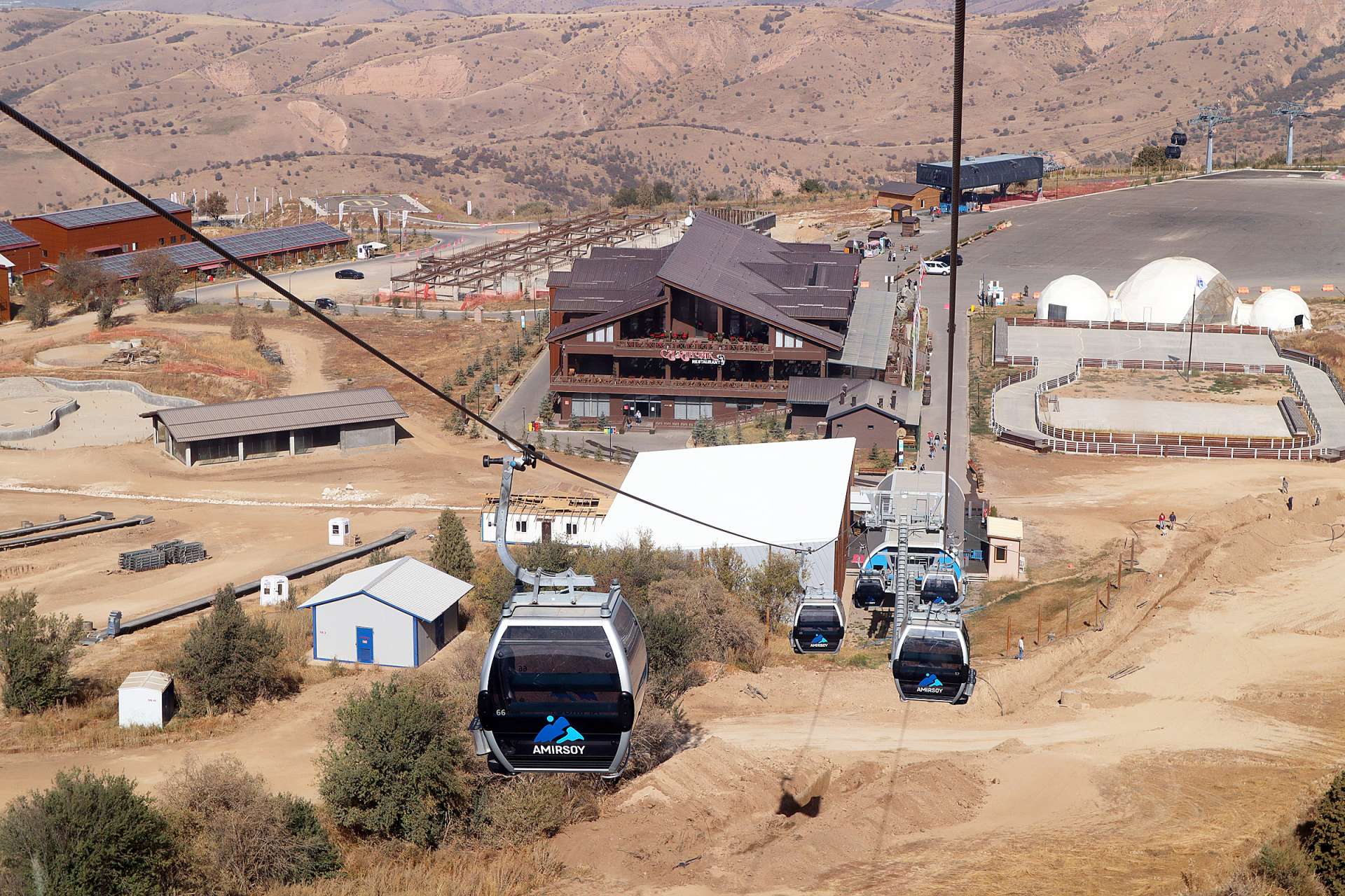 車の手配が着くのなら行ってみたいのが、夏は高原リゾート、冬はスキーリゾートとしてタシケント市民に人気のアミルソイ・マウンテンリゾート。タシケント中心部から車で1時間30分ほど(約65km)の西天山山脈の一部にあり、ゴンドラで標高2290mのアミロソイ山山頂まで登ることができます。ここには展望台やカフェ、レストランがあり、テラス席から雄大な景色を眺めながら、食事やお茶を楽しむのがおすすめ。地域の名峰として知られるチムガン山(標高3309m)も望めます。
