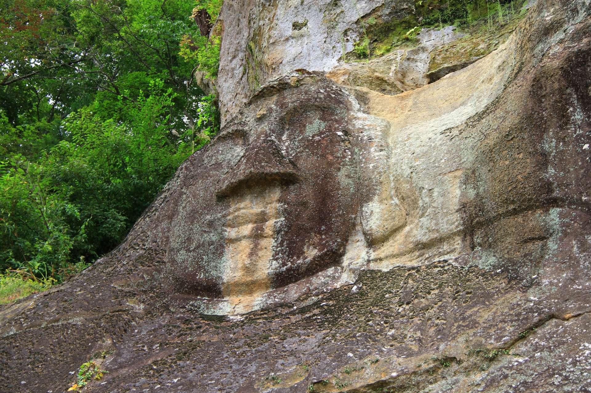 平安時代後期に戦没者を弔うために彫られたという岩面大佛も必見です。
