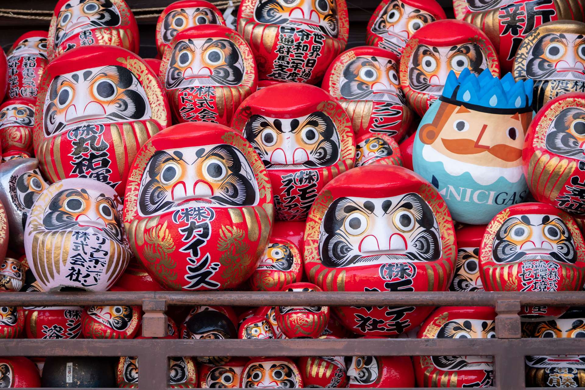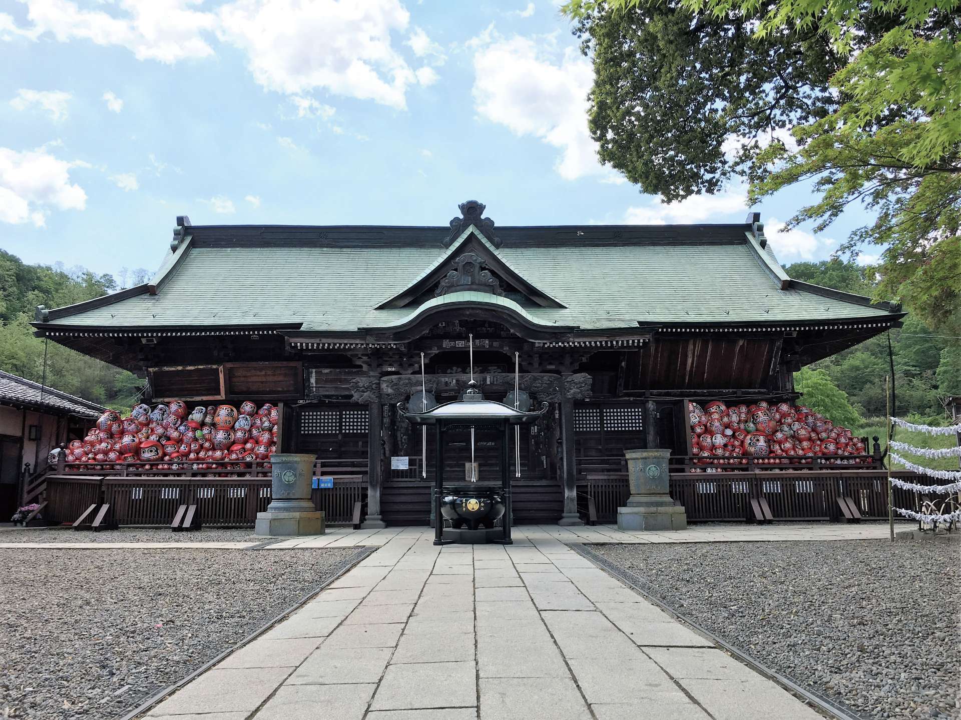 新年の願いを込めてだるまを頂くのもおすすめです。こちらは中国禅宗の開祖、達磨大師の教えを受け継ぐ禅宗のお寺。眉毛はツル、鼻から口ひげはカメと、顔に吉祥を表現した縁起だるま発祥の地として有名。200 年ほど前、天明の飢饉で苦しむ農民の副業にと、9 代目和尚が「一筆達磨像」をもとに張り子だるまの作り方を考案し、伝授したのが最初です。全国のだるまを展示した達磨堂や、ドイツ出身の建築家、ブルーノ・タウトが暮らした洗心亭も見どころ。お寺では縁起だるまに祈願をしてお札を張り授与しています。願いを込めて左目を書き入れ、願いがかなったときに感謝を込めて右目を入れるのが伝統です。