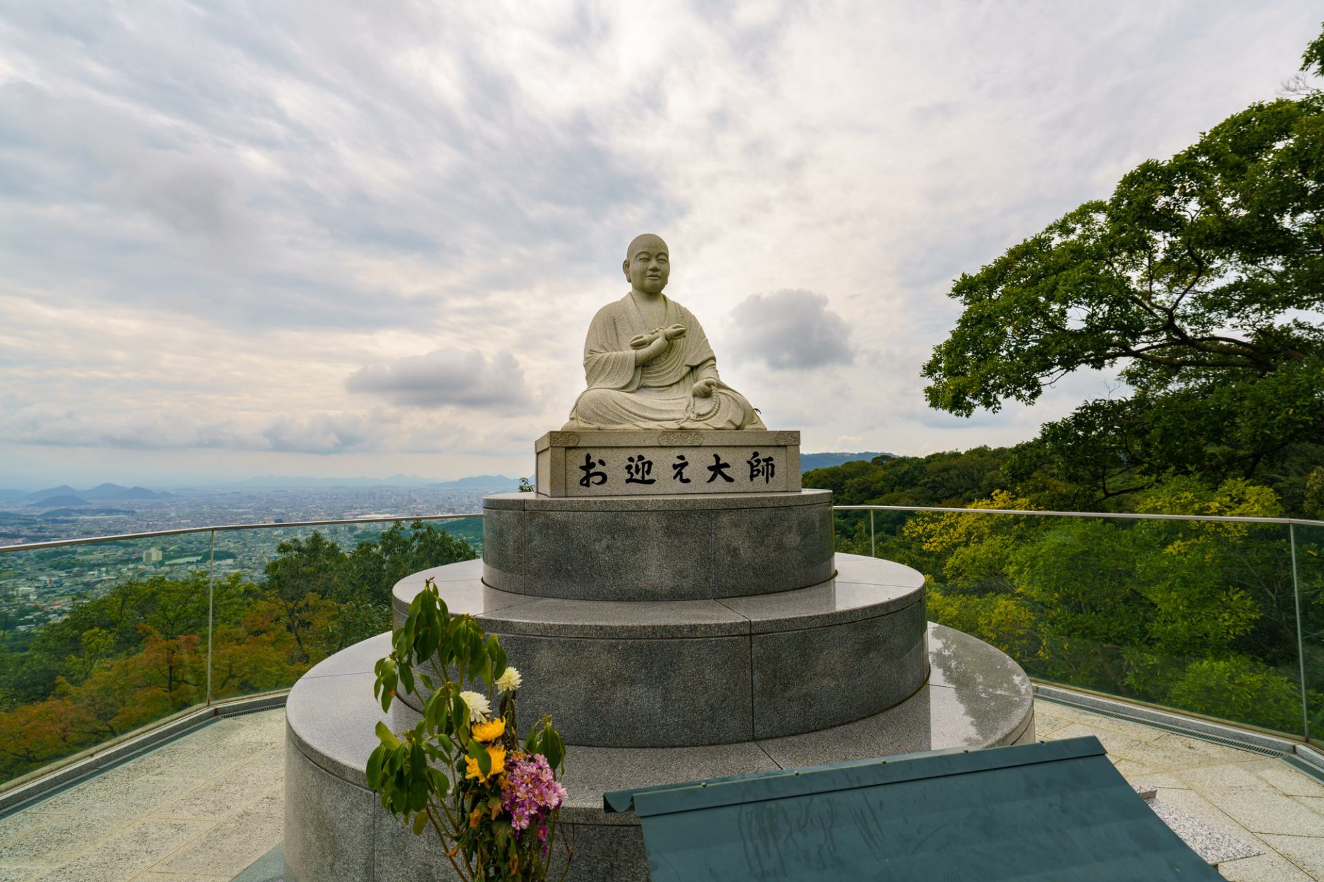 「お迎え大師」が鎮座する八葉蓮華の形の展望台からは、高松市郊外はもちろん、晴天時は金毘羅の象頭山や徳島県の剣山までも見渡せます。