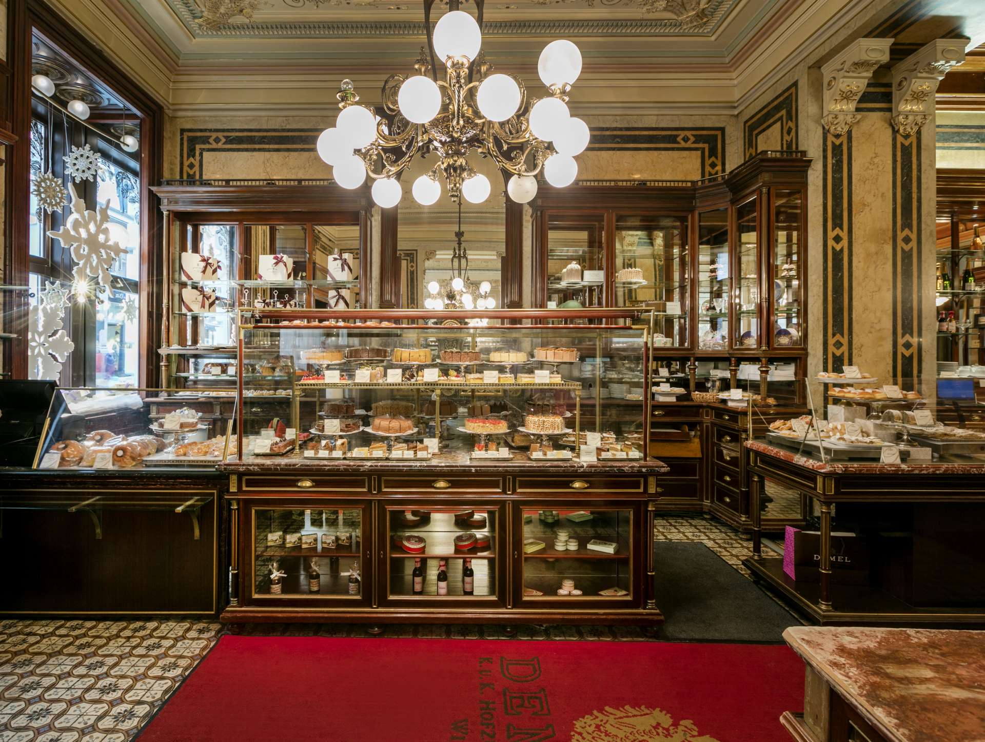 ここで紹介している「ゲルストナー」や「デーメル」は、すべて1800年代創業の老舗カフェ。看板に書かれた「K.u.K Hofzuckerbäckerei」は、皇室御用達の菓子店であることを示しており、実際にエリザベートが使いを出してケーキを買いに行かせたり、本人がお忍びで店にやってきたりしたこともあったそうです。特に「ゲルストナー」はかつて宮廷の晩餐会に料理を運び、現在でも国立オペラ座や楽友協会のビュッフェも運営するなど、ウィーンの食文化を支える存在でもあります。またウィーンで一番有名なスイーツ、ザッハートルテの元祖として有名な「カフェ・ザッハー」も訪れないわけには行かず、もはやカフェ自体が観光名所というケースがウィーンでは珍しくありません。