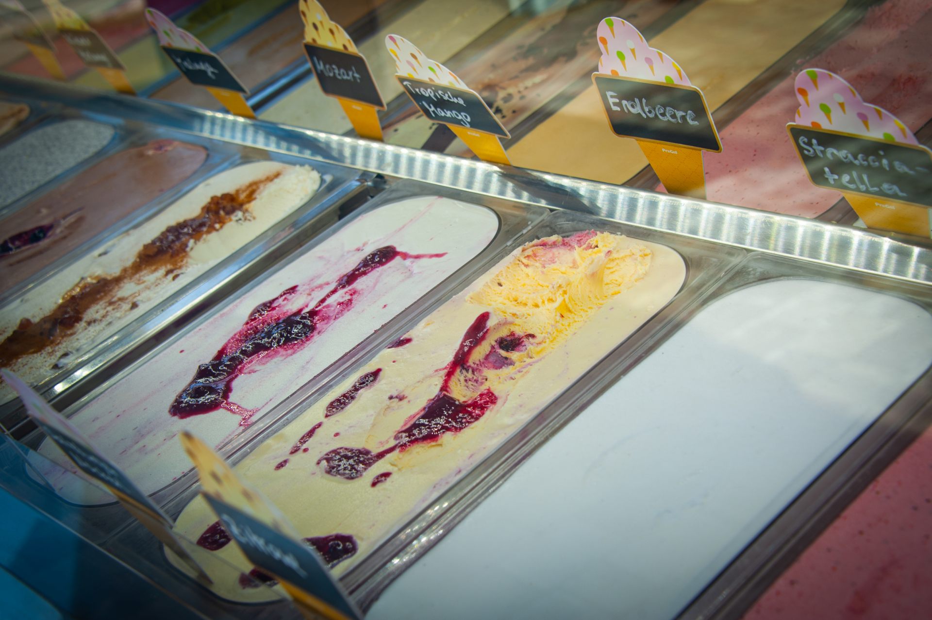 ザッハートルテがウィーンでおすすめのお約束スイーツであることに間違いありませんが、名物はそれだけではありません。ウィーンの人たちはケーキ以上にアイスクリームが大好きで、夏に街角を歩いているといたるところでアイスクリーム屋(Eissalon)を見かけます。ウィーンの人々が好むのはソフトなジェラートタイプ。どこのお店もガラスのショーウィンドー内にたくさんのフレーバーを用意しているので、それを指差してシングルなら「アイネ・クーゲル(eine Kugel)」、ダブルなら「ツヴァイ・クーゲルン(zwei Kugeln)」と注文してみましょう。アプフェルシュトゥルーデル味やザッハートルテ味、パンプキンシードオイル味といったオーストリアならではのフレーバーもあり、最近ではオーガニック素材にこだわったお店も増えています。