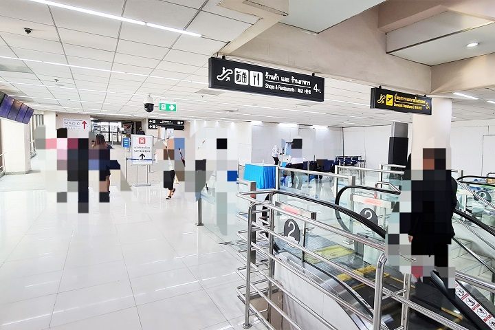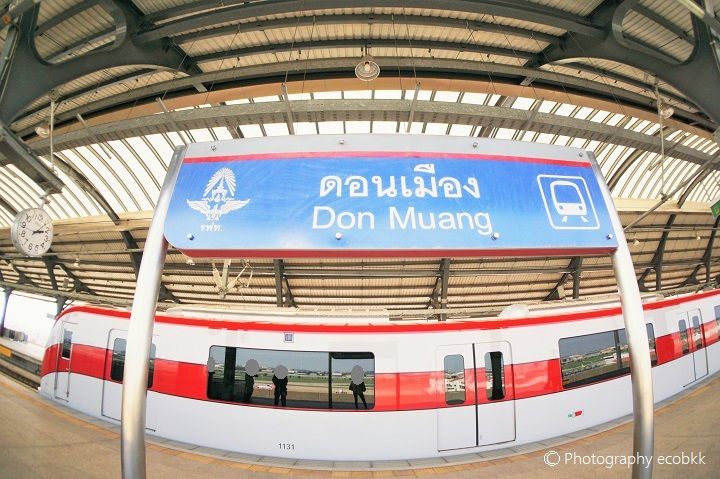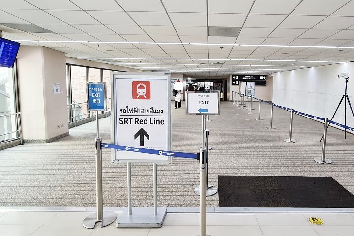 ドーン・ムアン空港の国際線ターミナル1にいる場合は、まず国内線ターミナル2へ移動しましょう。国内線ターミナルの2階に行くと、SRTドーン・ムアン駅に通じる通路があります。国際線ターミナル内にも、道中SRT Red Lineへ誘導する看板があります。
