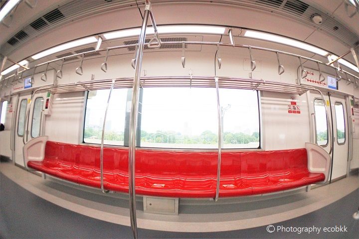 レッドラインには、MRTへの乗り換えが可能なバンスー中央駅(新駅名:クルンテープ・アピワット中央駅)から、北のランシット駅など9駅に向かうSRTダークレッドラインと西のタリンチャン駅など3駅に向かうライトレッドラインの2路線があります。ダークレッドラインにはドーン・ムアン空港へのアクセスが抜群のドーン・ムアン駅があります。運行は1時間に1~5本のペース。実際に乗車してみると、車両は現代的できれいです。