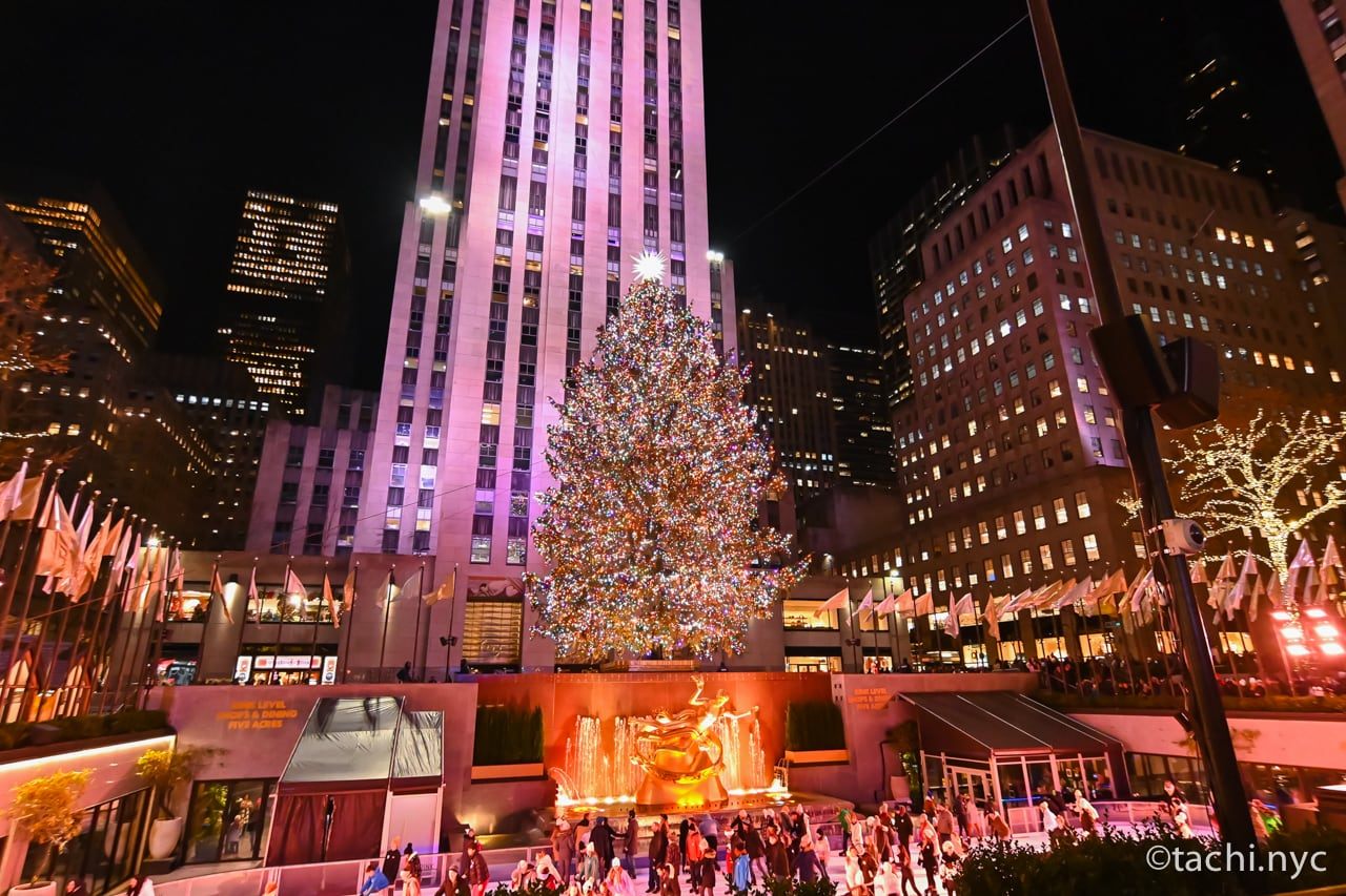 世界で最も有名なクリスマスツリーのひとつといえば、ロックフェラーセンター(以下ロックフェラーと表記)に設置される巨大ツリーです。例年サンクスギビングデー明け翌週の水曜日に点灯式が行われます。