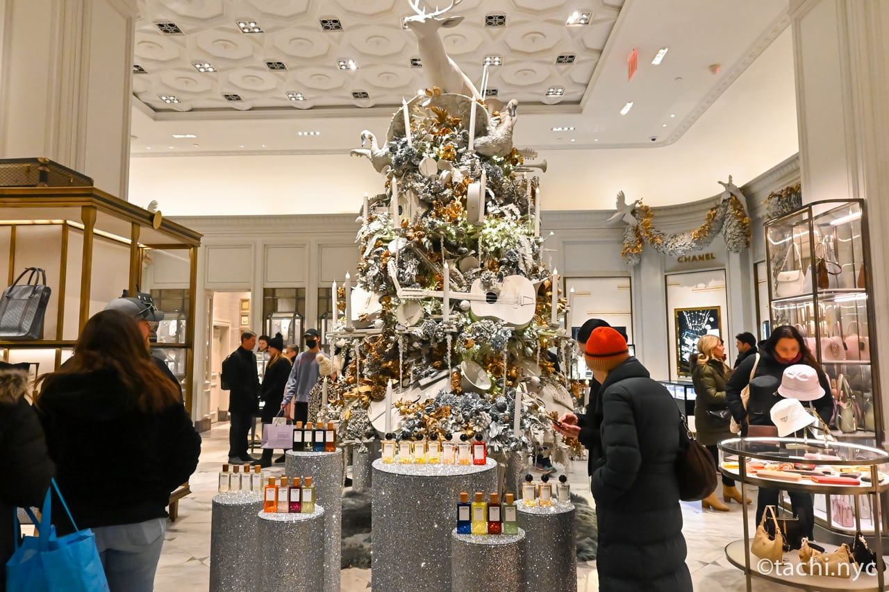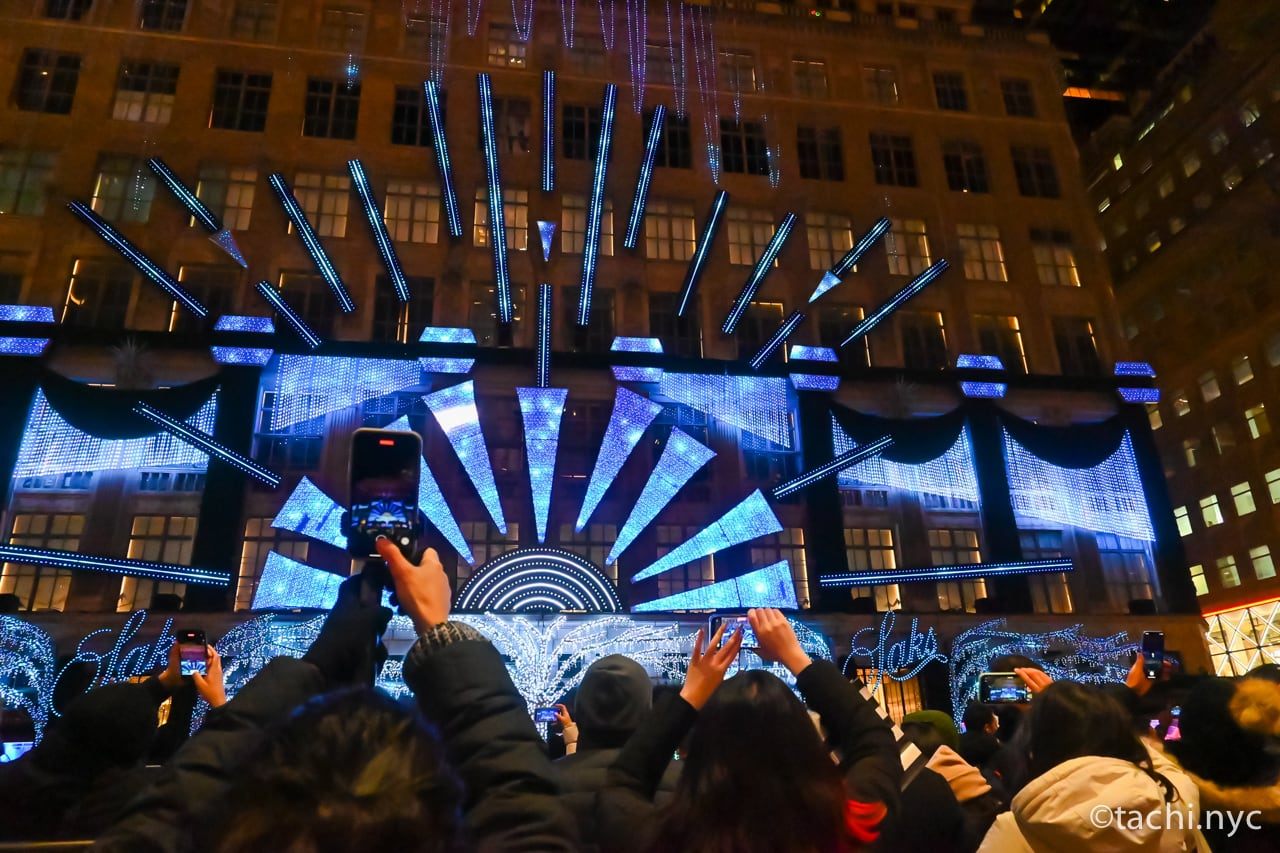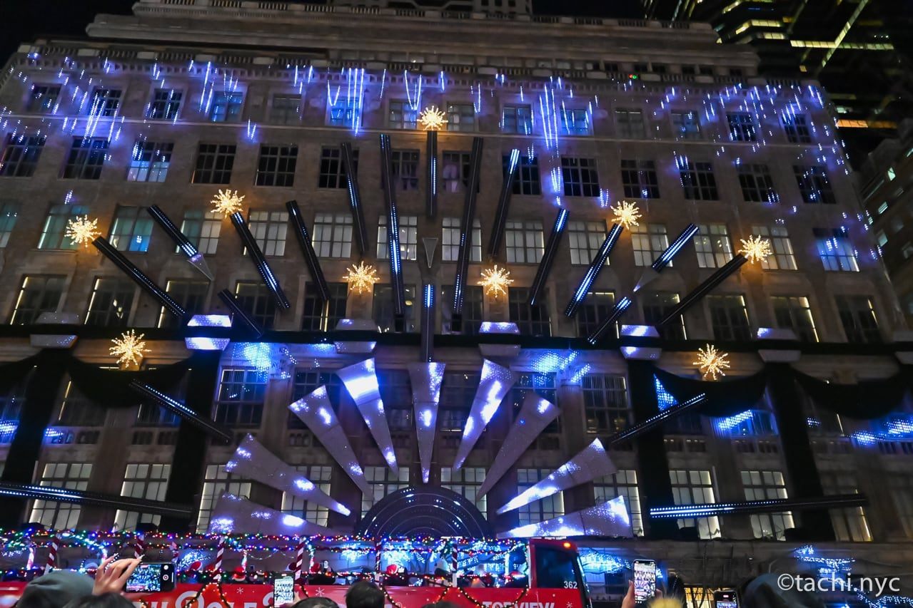 ロックフェラーのクリスマスツリーがある5番街を挟んだ向かい側にある、高級デパート「サックス・フィフス・アベニュー」。ここで有名なのはデパートの外壁を使ったライトショー。音楽に合わせたライトパフォーマンスは美しく、とても迫力があります。