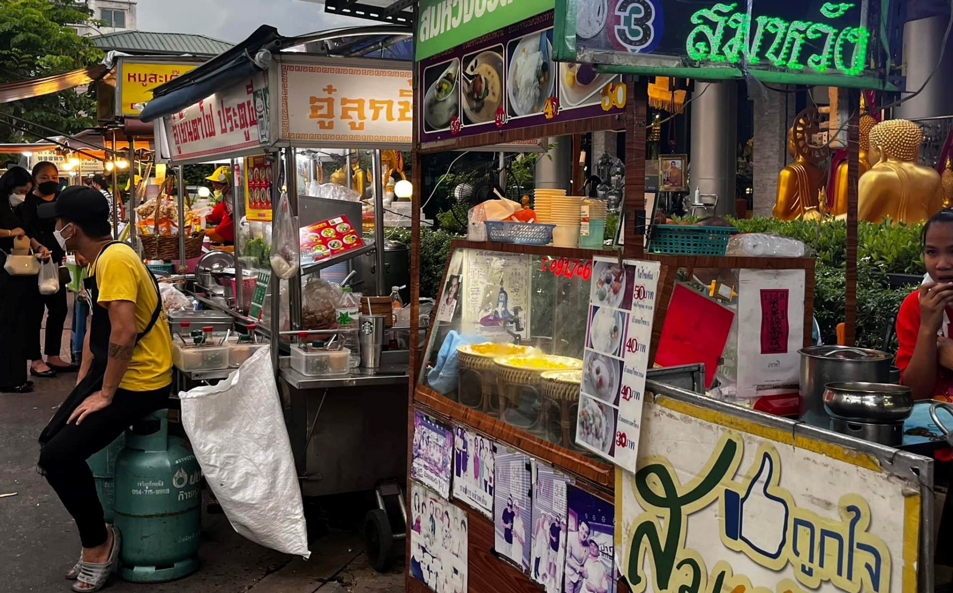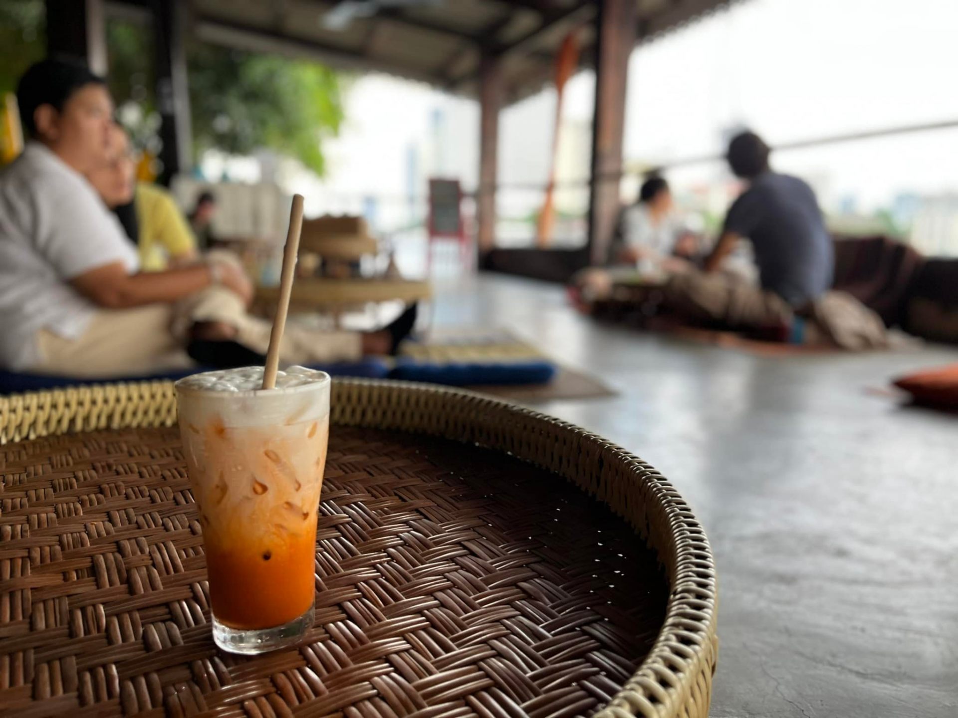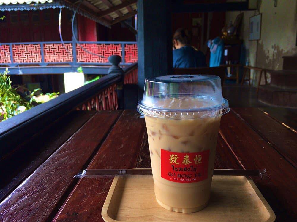 ソフトドリンクは一律100バーツ(約380円)。タイミルクティーの甘さが歩き疲れた体に染みわたります。読書をしてもよし、行き交う船や沈みゆく夕日をぼーっと眺めてもよし! 新旧が入り交じる「タラート・ノーイ」は、訪れるたびに新しい発見があります。
