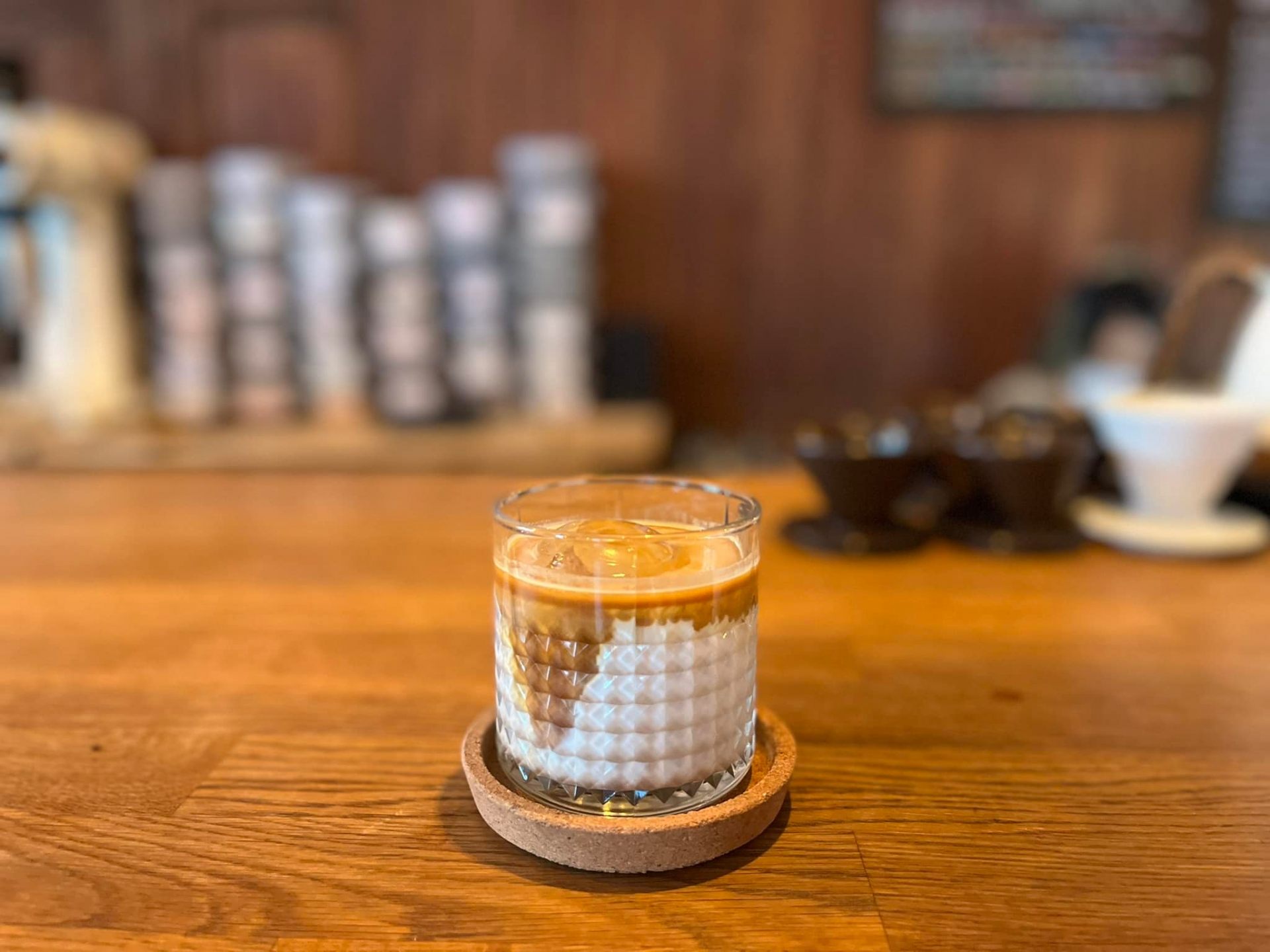 店内は、おしゃれなオブジェや写真が壁に飾られ落ち着いた雰囲気。木の温かみを感じる空間にはカウンター席とテーブル席があります。