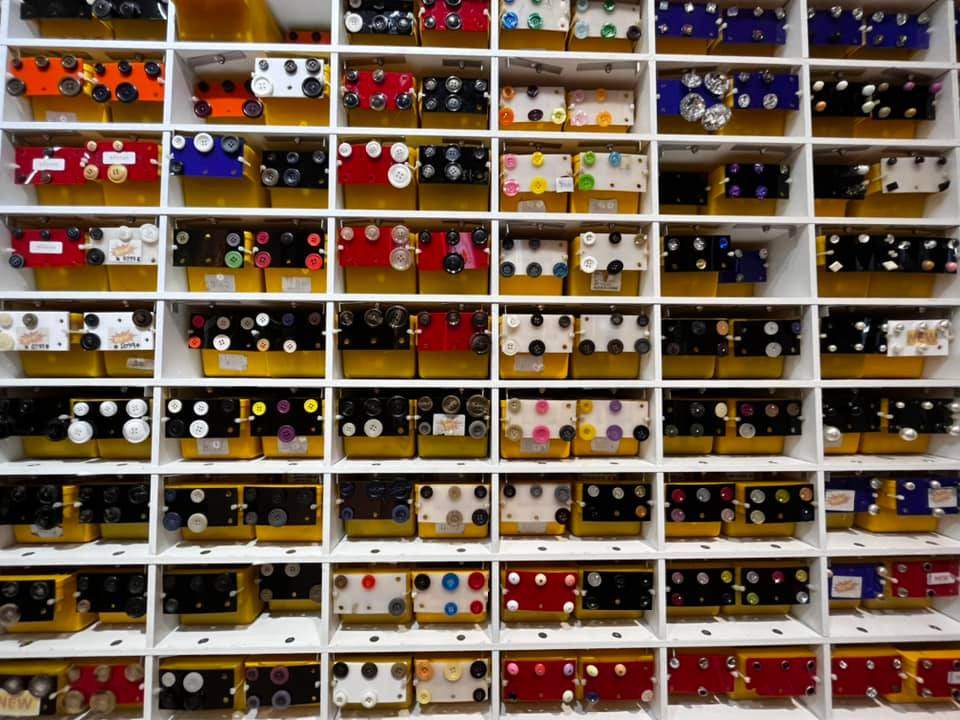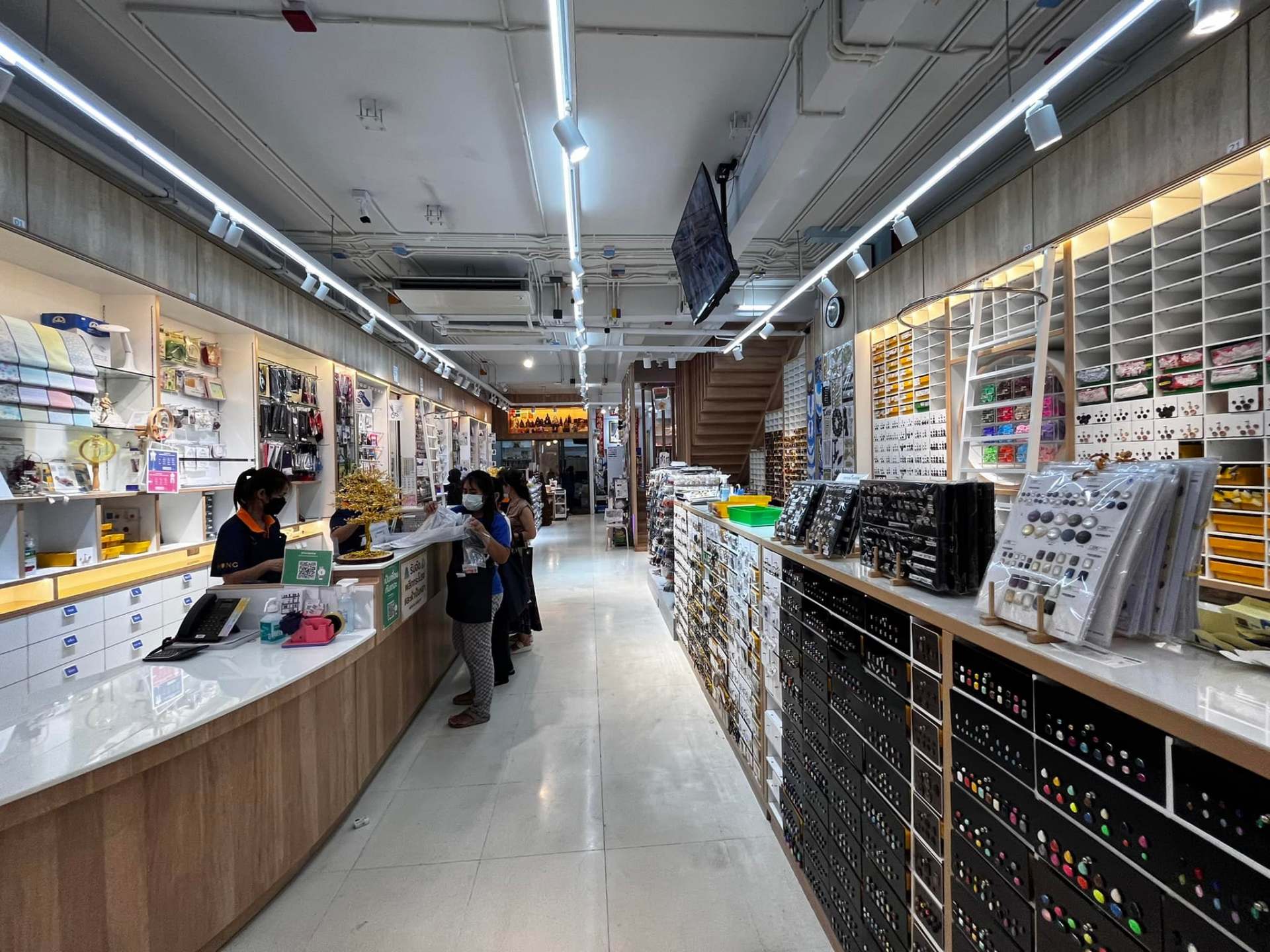 手芸用品のお店、「ホン・ガーメント・アクセサリー(Hong Garment Accessories)」には、刺繍糸・枠、針、ミシン糸、ボビン類、チャコペーパー、ボタン、マジックテープ、ゴムなどが豊富に取り揃えてあります。色やデザインがおしゃれな商品が多く、ディスプレイもきれいです。少し割高ですが、日本製の商品も手に入るためバンコクに住む日本人にも人気です。