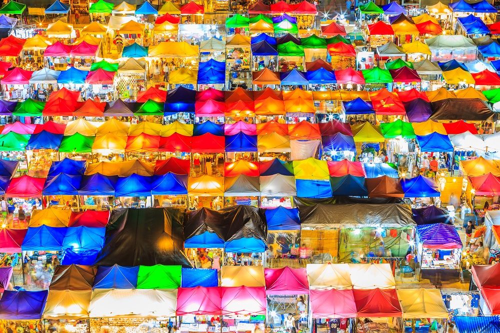 バンコク有数のナイトマーケット「ラチャダー鉄道市場(正式名称:タラ―ト・ロットファイ・ラチャダー)」。2015年にチャトゥチャック・ウイークエンド・マーケットから移転してきた市場で、かつてはタイ国鉄の倉庫で開かれていたために「鉄道市場」という愛称で呼ばれ親しまれてきました。