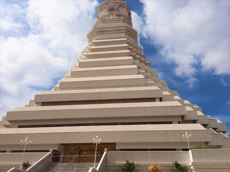 古い歴史をもつ由緒あるお寺で、創設はアユタヤ時代中期です。敷地内にある真っ白な「マハーラチャモンコン大仏塔」は、故プミポン国王と王妃の72歳の誕生日を記念して2012年に建設された、比較的まだ新しいもの。