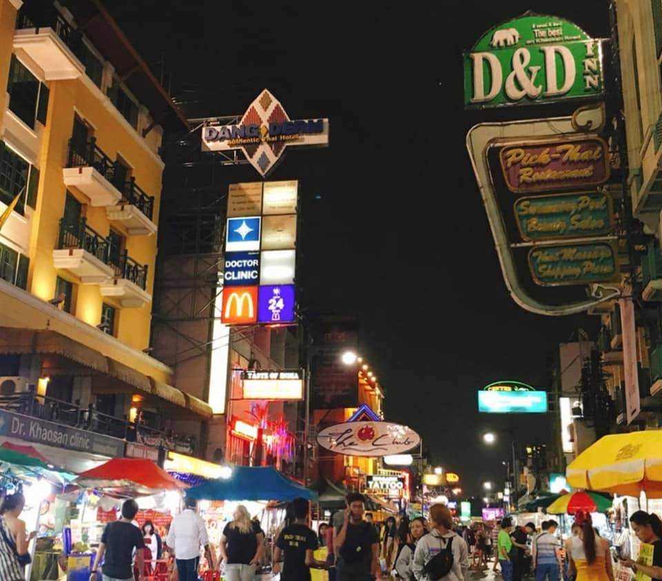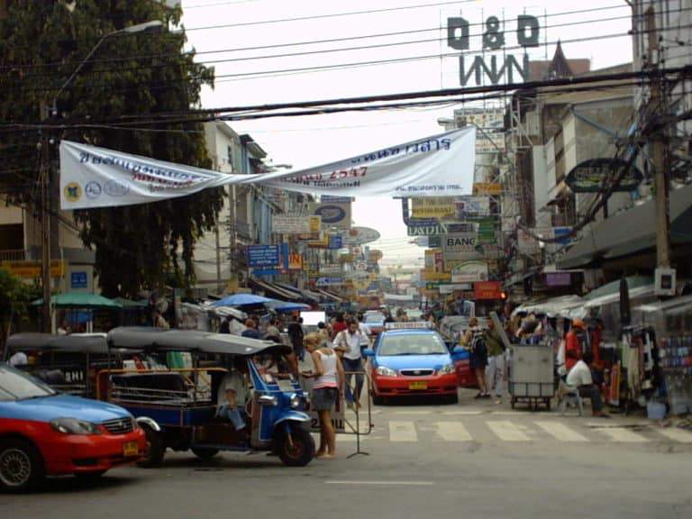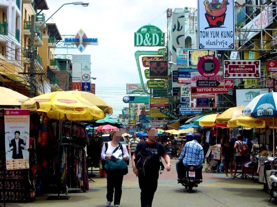 バンコク旧市街に位置する「カオサン通り」は、全長およそ400メートル、道幅およそ20メートルほどの道。カオサンとはタイ語で「精米」を意味し、1970年代までエリア一体に「米問屋」が多かったことに由来しています。1980年代にはこの通りの住民が旅行者向けに空室を貸しはじめ、そこからカオサンの「安宿ビジネス」がはじまりました。