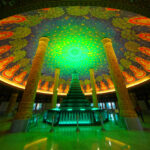 「フォトジェニックな写真が撮れる」とインスタグラムで話題になったのは、最上階である5階。中央には800枚のガラスを積み上げて作られたエメラルドグリーンのガラス塔があり、そのまわりを80頭のガラス製の竜王たちが囲んでいます。