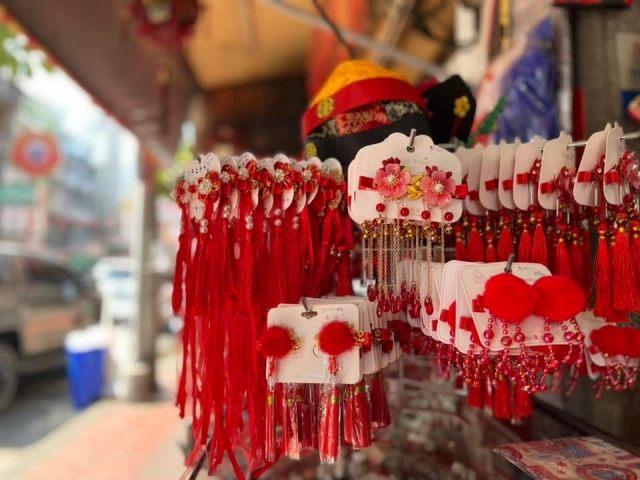 中国語の看板がならび屋台や露店がひしめきあう、メインストーリートの「ヤワラート通り」では、雑多な雰囲気とムンムンとした熱気のなかで赤い服やチャイナドレスを身にまとった人々でにぎわっています。どんなものが売られているのでしょうか。