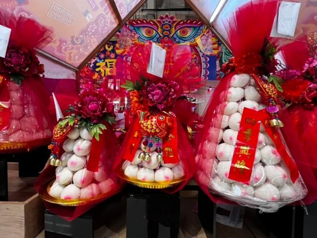 BTSサイアム駅直結の「サイアム・パラゴン」の食料品売り場では、春節関連の商品がずらりと並べられています。チャイナドレスや赤い服を身にまとった店員さんが、とってもかわいくてキュンとします。