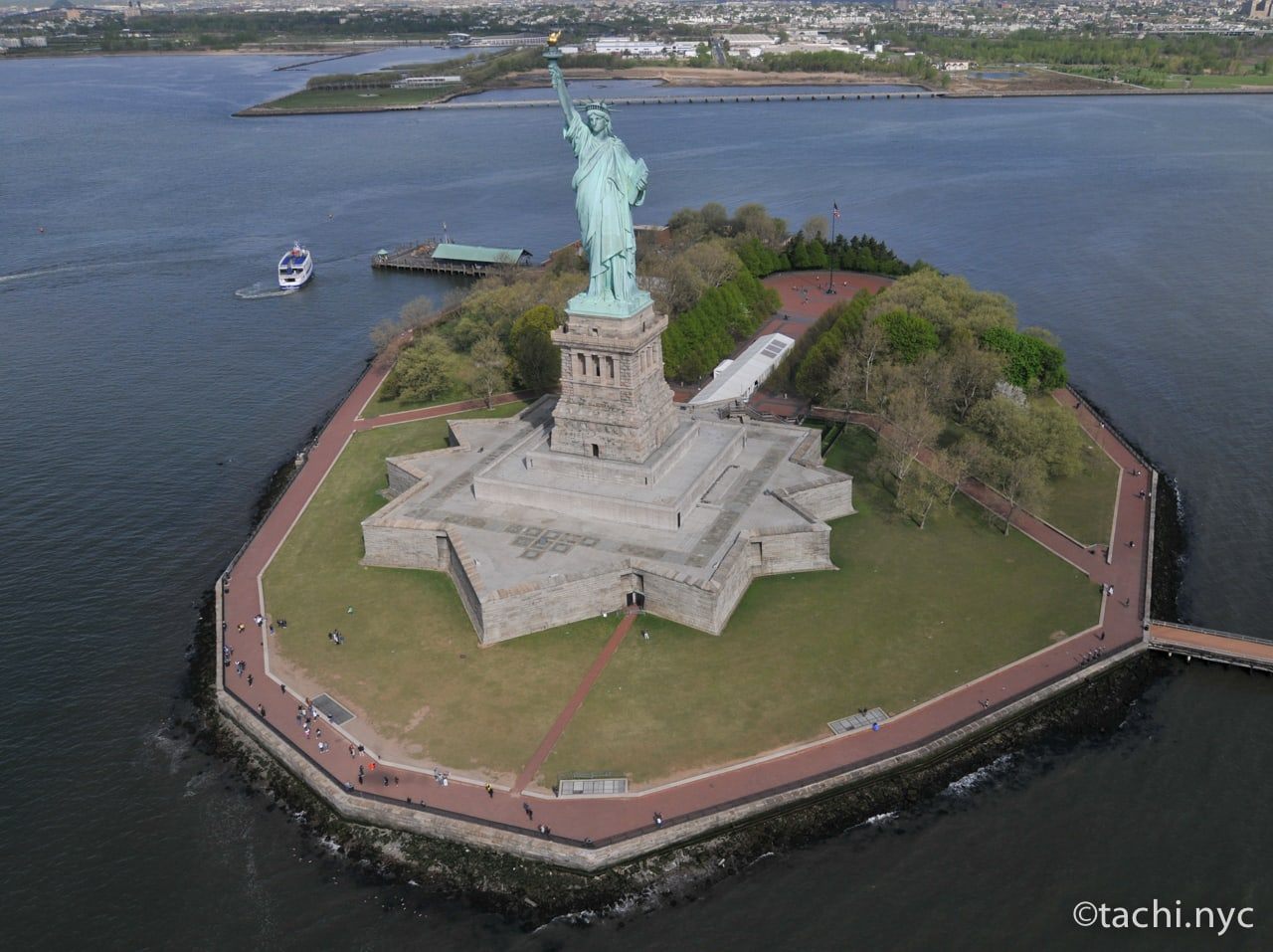 「リバティアイランド(英語名:Liberty Island)」までは、有料の観光フェリーでマンハッタンから20分ほど。島内への上陸は無料で、自由の女神を見るのに入場料はかかりません。ただし、自由の女神の台座内部を見学する場合はフェリー料金が変わります。台座の内部を見たい場合は“PEDESTAL ACCESS”付きのフェリーチケットを購入しましょう。