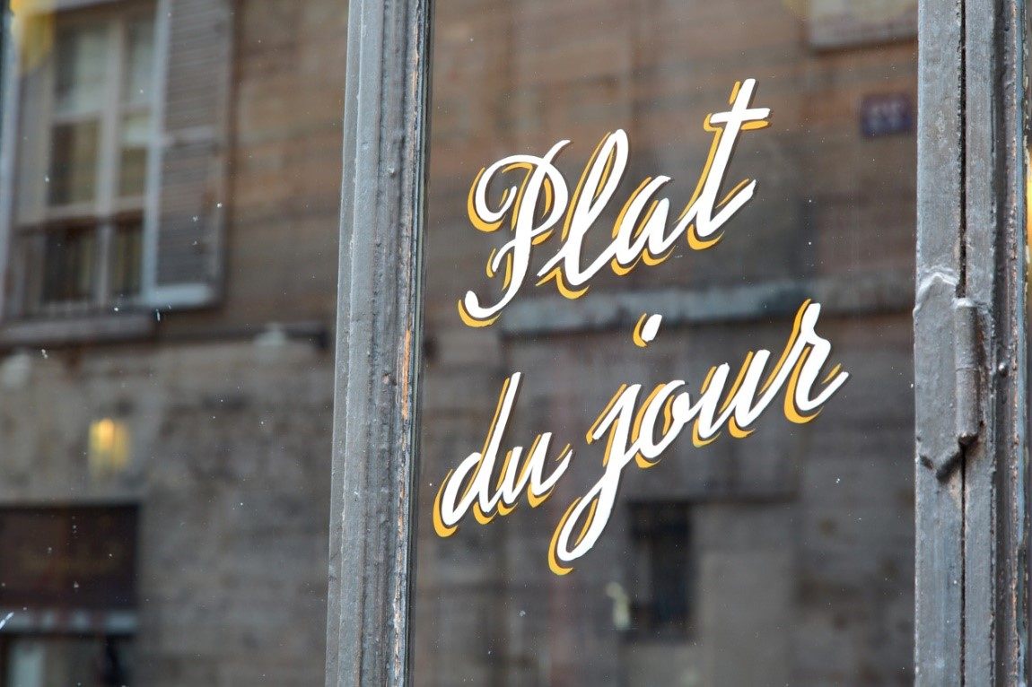 食事をする場所と聞いて最初に思いつくのがレストランやカフェ。夜は高めの値段設定をしている店舗でも、お昼はリーズナブルにしているところは多いです。お店でまずチェックすべきは「Plat du jour(プラ・デュ・ジュール)」と呼ばれる日替わりメニューです。