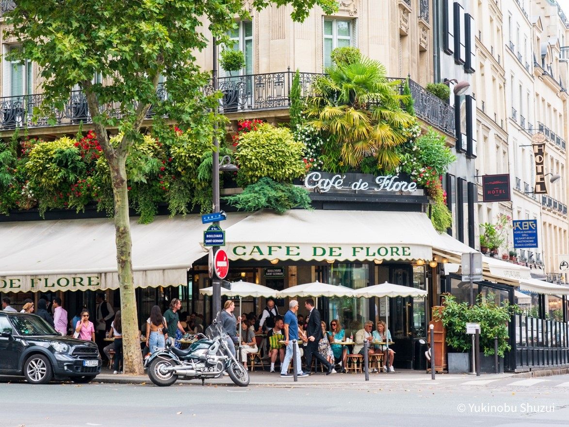 パリ市内6区サン・ジェルマン・デ・プレ教会前の広場には、パリのカフェ文化を語る時に欠かせない「カフェ・ド・フロール」と「レ・ドゥー・マゴ」というふたつの有名カフェが軒を連ねています。