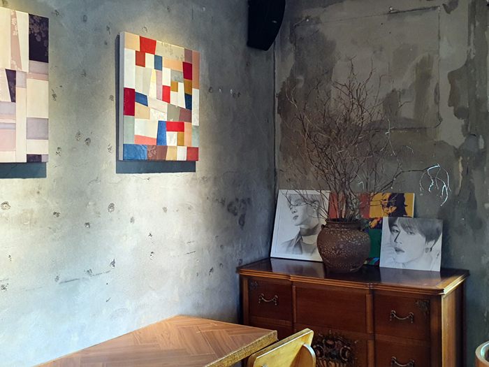 最上階には、JIMINの似顔絵も置かれています。ARMYにはやはりリビングルームだった壁前のテーブルやJIMINの似顔絵が置かれた棚の横のテーブルがおすすめですが、ほかのどの席でもきっと満足できるオシャレな雰囲気のカフェです。
