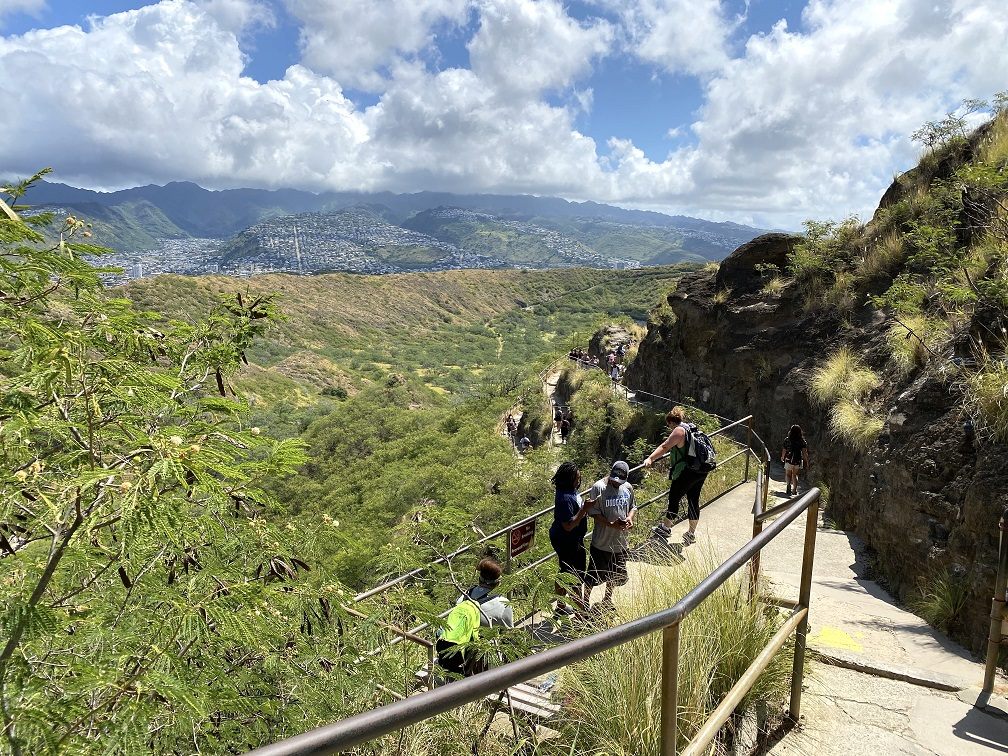 このダイヤモンドヘッドに登頂できることをご存知ですか? 登頂といっても、標高232mほどですので、頂上までは小1時間ほどです。小学生くらいの子供でもハイキング気分で歩ける登山道なので、子供を連れた家族も多くいます。