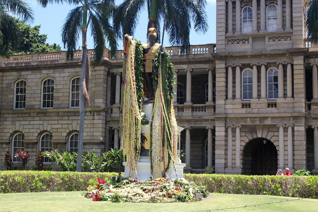 キング通りをはさんだイオラニ・パレスの向かいには、1810年にハワイ諸島を統一してハワイ王朝を築いたカメハメハ大王の像もありますので、ぜひ一緒にご覧ください。