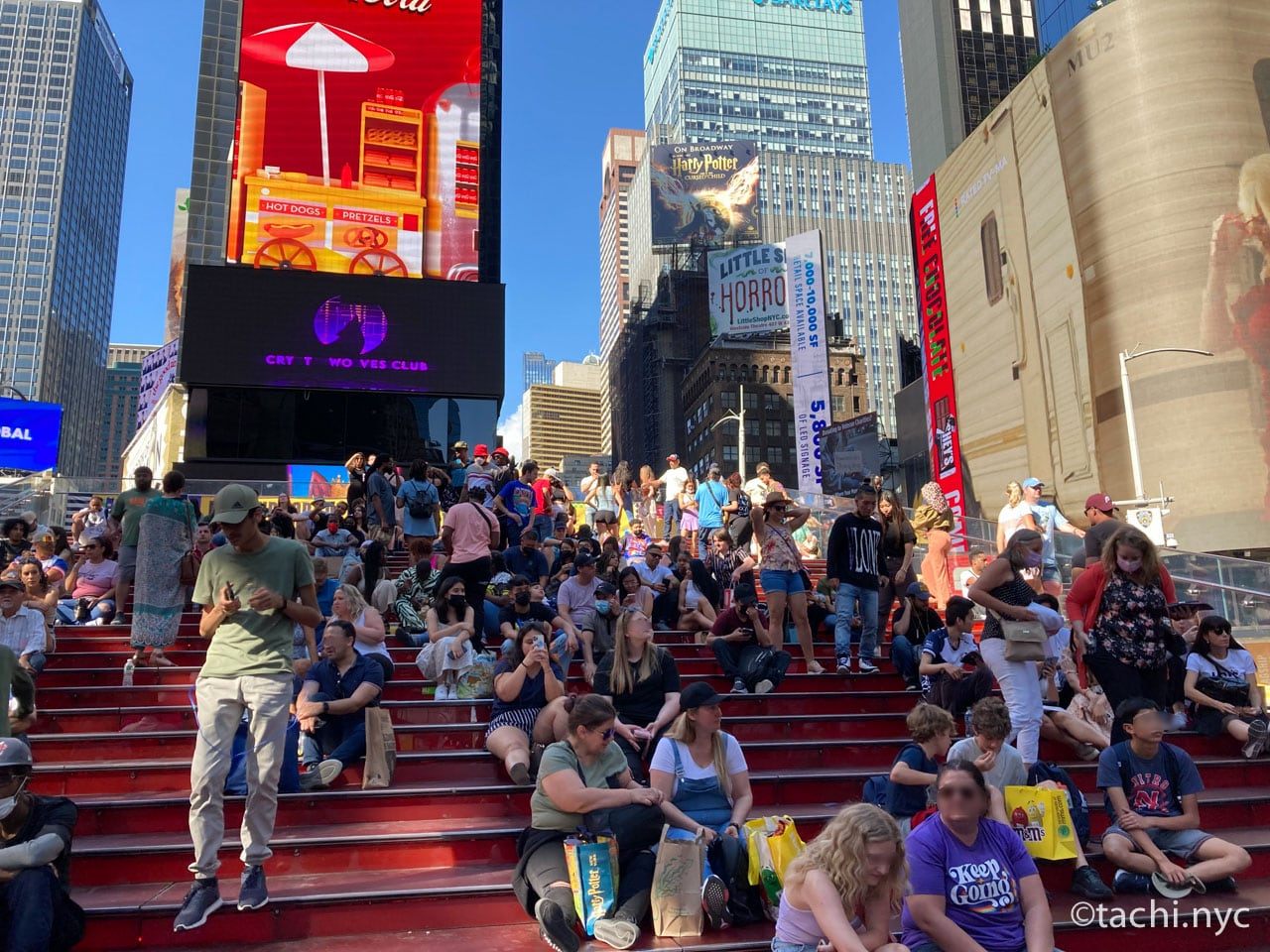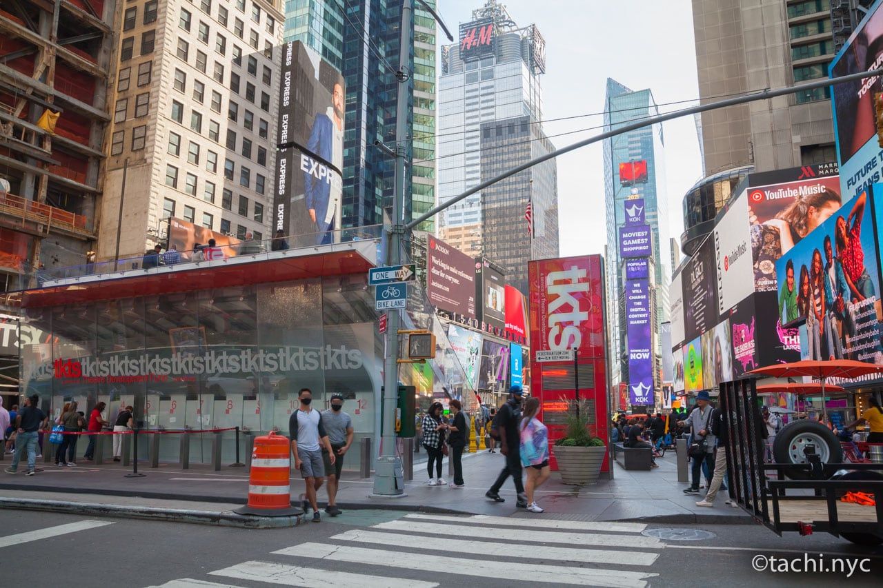 コロナ大流行時にはタイムズスクエアはほぼ無人になり、階段内は立ち入り禁止になっていましたが、現在では観光客も増え、かつての賑わいを取り戻しつつあります。