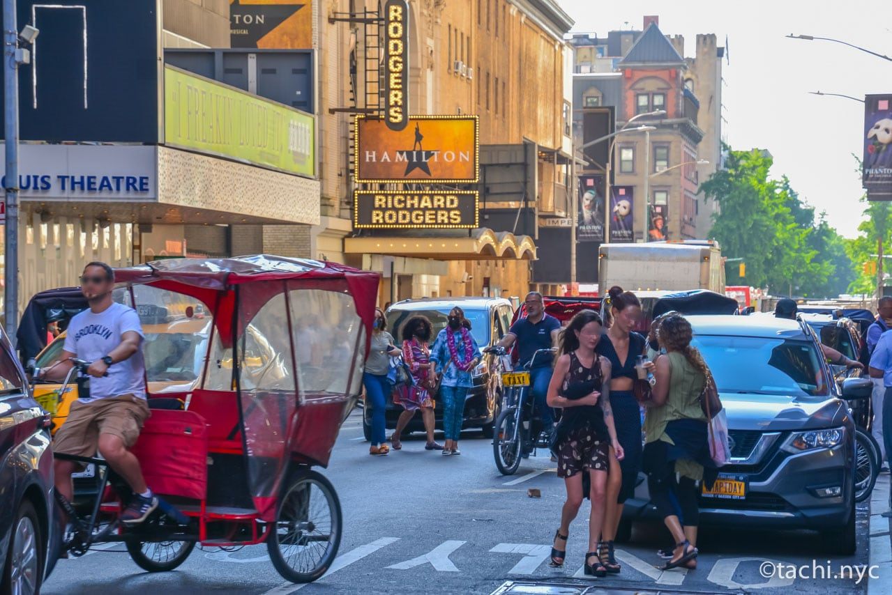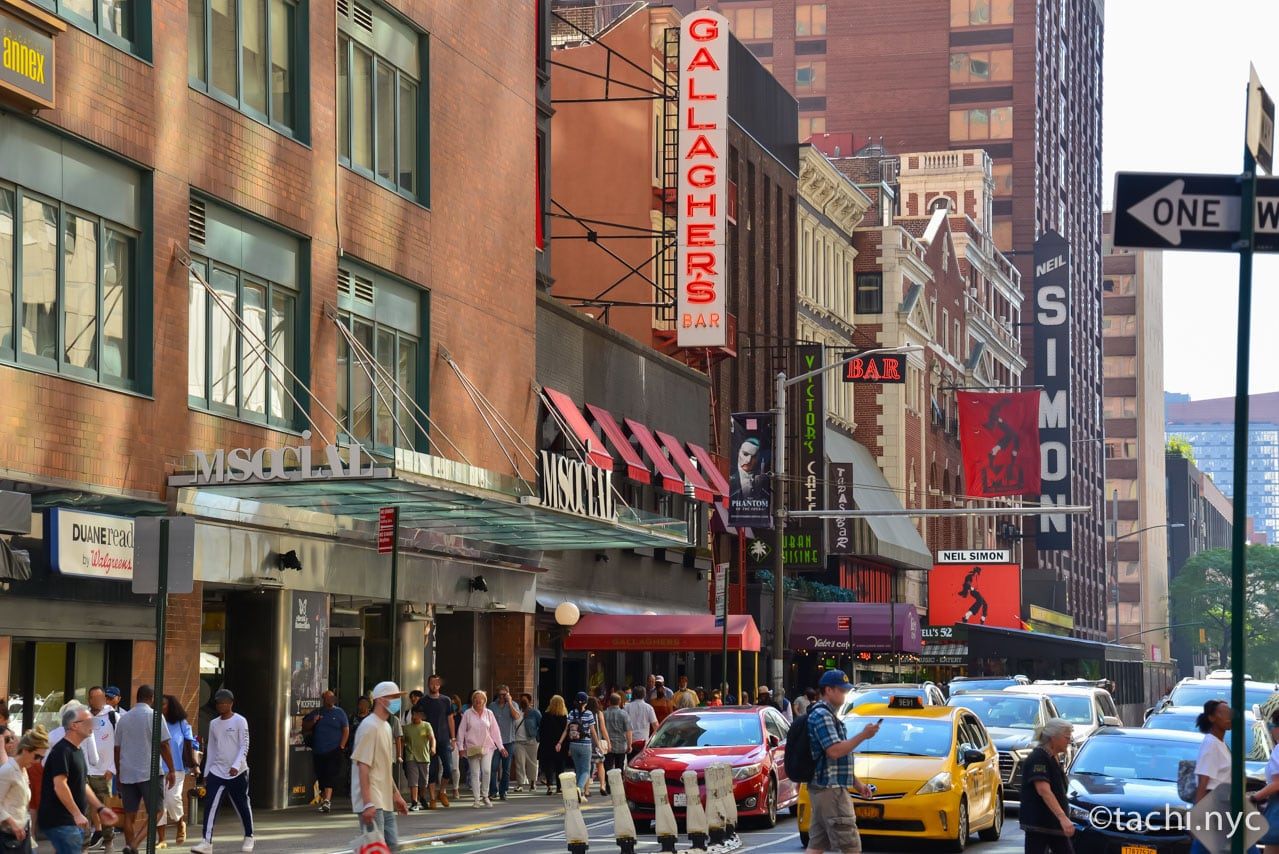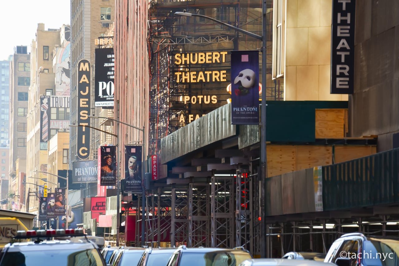 マンハッタンにある500席以上の41の商業劇場で上演されているものが、ブロードウェイ・ミュージカルと呼ばれますが、ブロードウェイ沿いにある劇場は3つしかなく、多くの劇場は劇場街(Theater District)と呼ばれる6番街から8番街の間の41丁目から54丁目周辺に点在しています。
