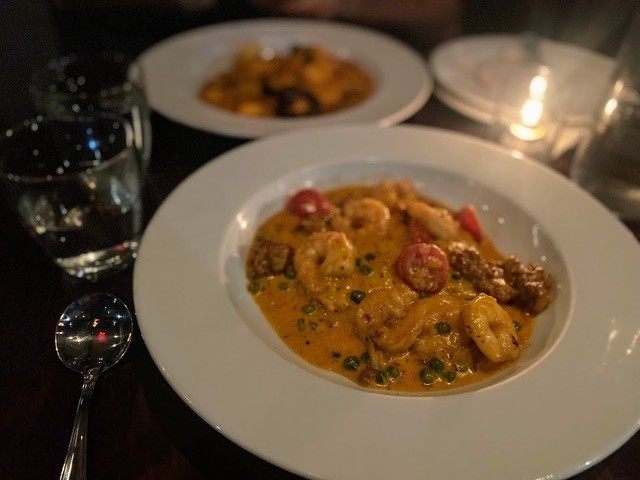 まずご紹介するのが、アメリカ南部で広く食べられる「シュリンプ&グリッツ」。聞きなれない料理名かもしれませんが、グリッツとは乾燥した粗挽きとうもろこしの粉に水や牛乳を入れてお粥状になるまで煮込んだ料理です。南部発祥で、朝食やブランチによく食べられます。そんなグリッツの上にトマトソースやクリームソースで煮込んだエビとベーコンを組み合わせたのが「シュリンプ&グリッツ」!